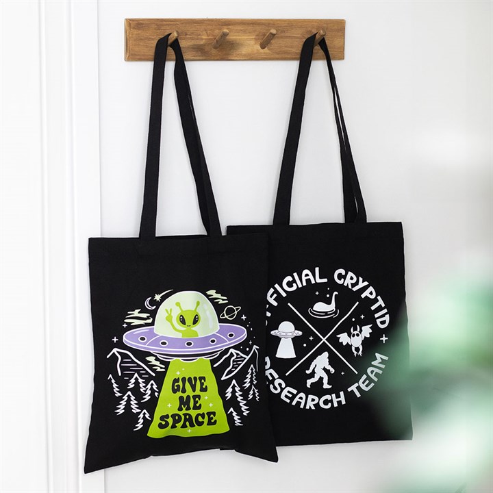 Tote your top-secret gear in style with this Cryptid Research Team bag. Whether you’re heading into the woods or just the supermarket, it’s the perfect carry-all for snacks, notebooks, or suspiciously blurry photos. Polycotton.